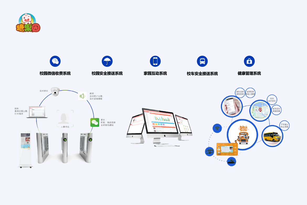 智能校园云平台是针对教育行业开发的智能教育管理平台,综合利用智能硬件以及移动互联网技术为学校提供一站式信息化解决方案,致力解决幼儿园、小学、中学的安全出入管理、信息化管理及家园共育问题。
