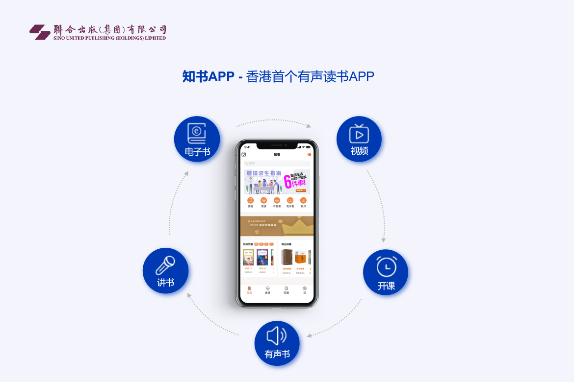 知书 APP 是联合出版集团为香港市民带来香港最大型网上书店及首个源自香港的知识服务平台。知书 APP 集“读”、“听”、“学”、“赏”等功能于一身,包括“讲书”、“开课”、“有声书”、“电子书”和“视频”等五方面核心内容,专注阅读与知识服务,以音视频为主带来全新的阅读体验,满足今日读者对“知识”、“情感”、“技能”、“发展”的需求。
