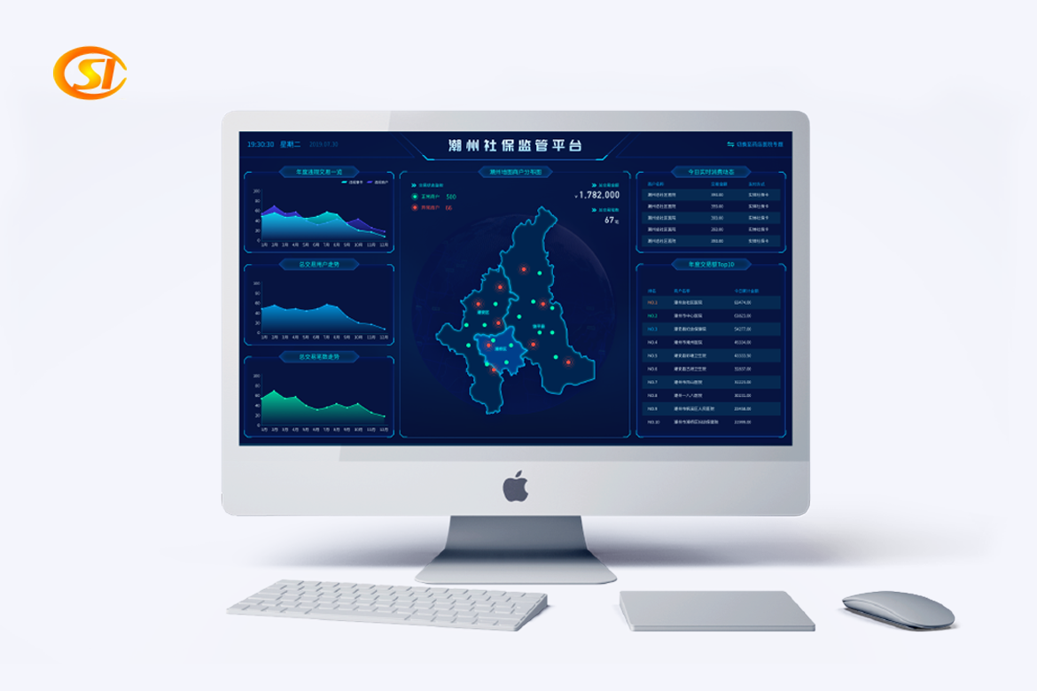 我司为潮州人社局特开发的“潮州社保监管平台”通过验证机器与银联交易,拦截违规交易,并对违规交易的机构进行拉黑处理。同时,通过大屏实时监控各区域定点机构违规交易及社保交易实况,形成每月项目社保交易巡检报告。